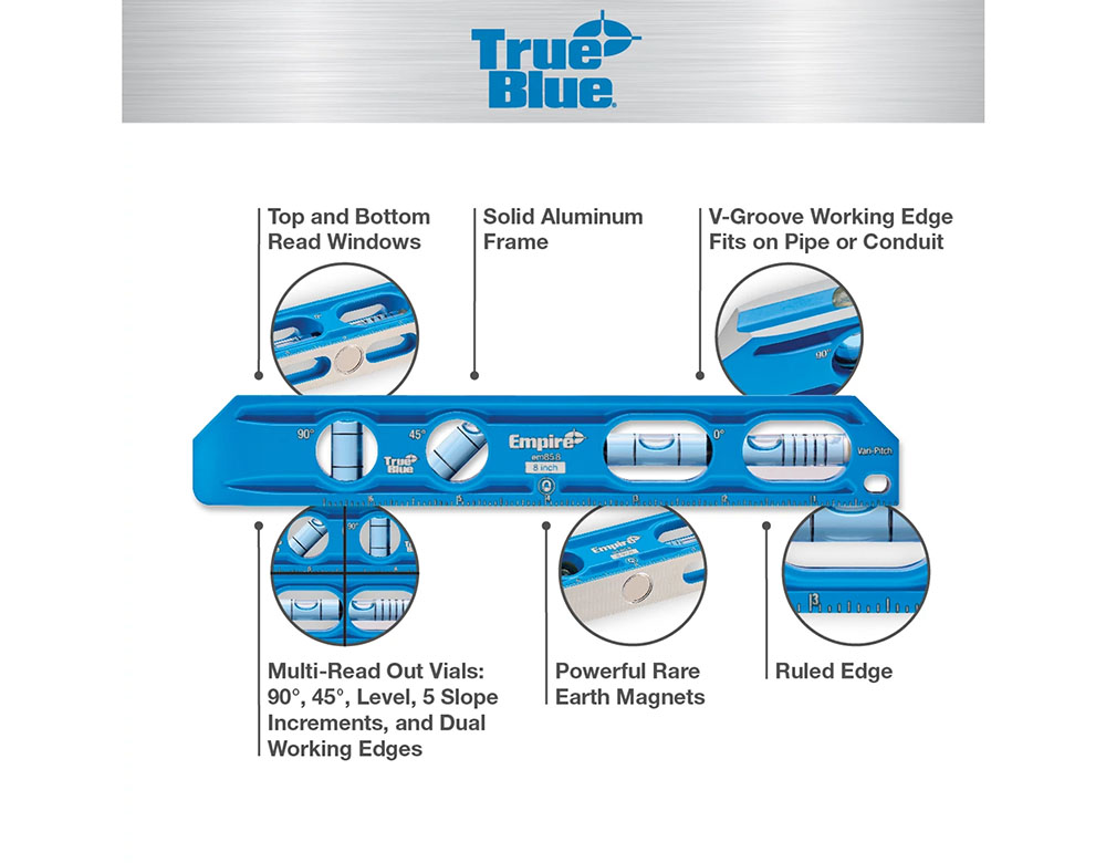 - VARI-PITCH™ vial reads slope at 1/8", 1/4", 3/8" 1/2"